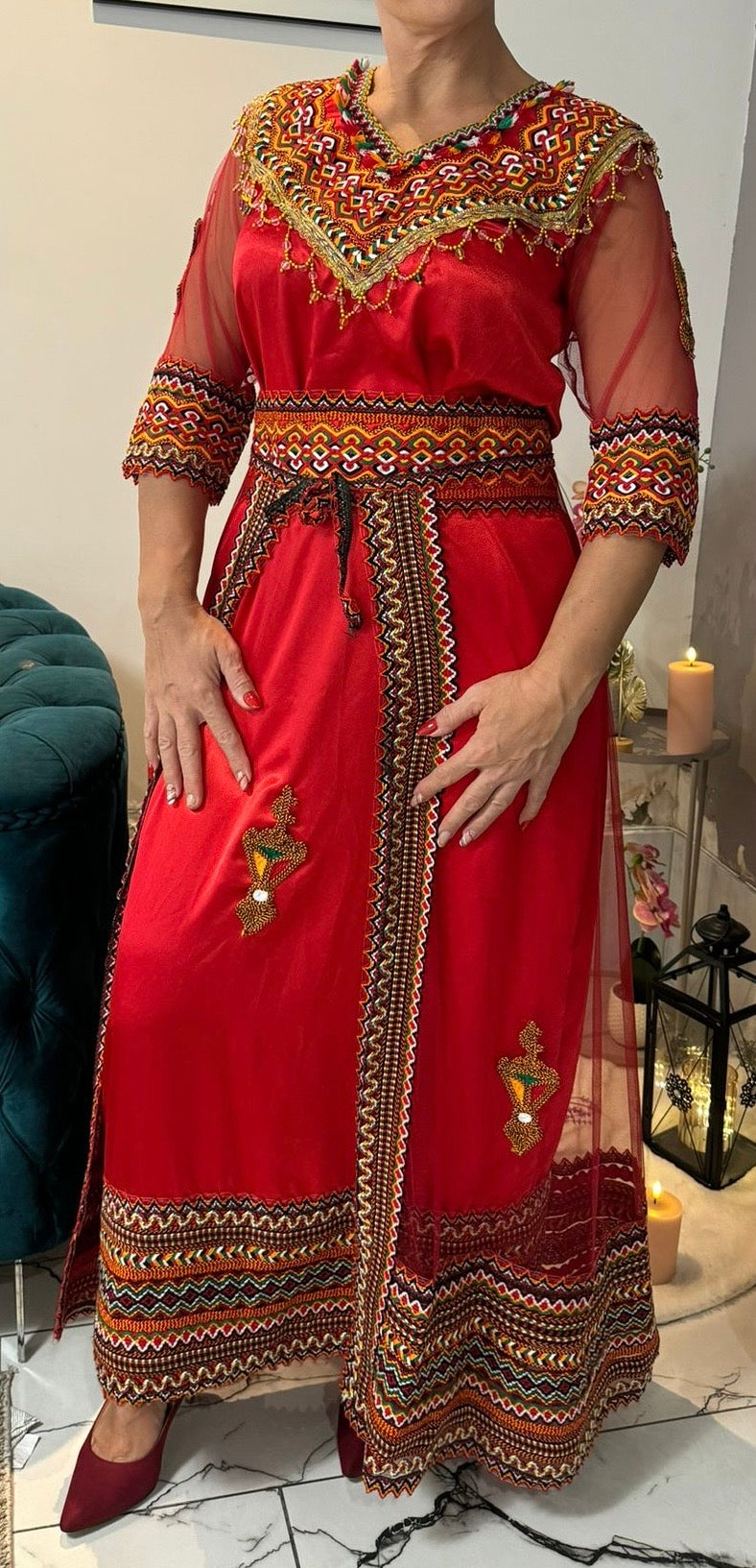 Robe satinée rouge
